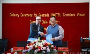 3月20日,黄海造船有限公司为荷兰船东 SEATRADE建造的“SEATRADE CHILE”轮1800TEU集装箱船顺利交付。“SEATR...