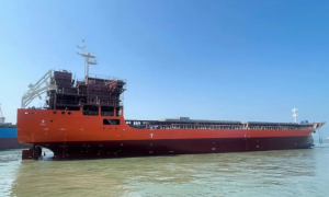近日,由宁波东方船舶设计院研发的13500DWT散货船在青岛黄海船厂顺利吉水。 该船为钢质、双机(尾机型)、双桨、双舵、方尾、船首为直壁首、...