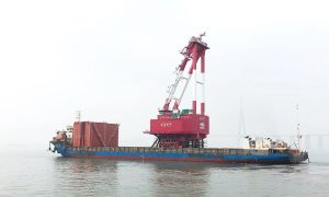 5月15日上午,在南通振华重型装备制造有限公司码头,装载着龙源振华2500吨起重机回转底盘及人字架总成、试验水箱的运输船“奥凯龙66”顺利开...