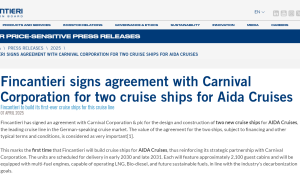 仅隔7天!Fincantieri再获2艘邮轮大单