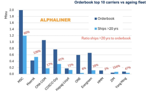 根据航运分析机构Alphaliner的数据,当前排名前10的班轮船东手持集装箱船订单数量达到431艘,总运力超过590万TEU。加上创纪录的...