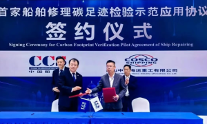 2025年12月3日,在第22届中国国际海事展期间,舟山中远海运重工与中国船级社(CCS)浙江分社正式签署全国首份《船舶修理碳足迹检验合作协...
