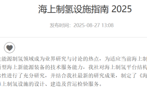 中国船级社《海上制氢设施指南》(2025)将于10月1日生效。《指南》旨在指导海上制氢设施的设计、建造及营运检验服务。 《指南》包括海上水电...