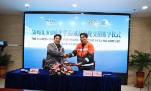3月13日,59#50000吨Ⅱ类化学品船签字交付仪式在新时代造船八楼会议室举行,该船将正式交付新加坡船东EPS运营。 据介绍,该船是新加坡...
