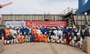 2月18日,启东中远海运海工举行了N1151 P-82 FPSO艉总段搭载仪式。 据悉,该项目主船体于2023年3月31日开工,艏总段部分于...