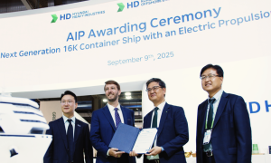 HD现代造船业务中间控股公司HD韩国造船海洋和旗下造船子公司HD现代重工研发的16000TEU电动推进集装箱船概念设计已获得美国船级社(AB...