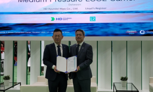 在Gastech 2024期间,HD现代尾浦研发的20000立方米液化二氧化碳(LCO₂)运输船已获得英国劳氏船级社(LR)的原则性批准(A...