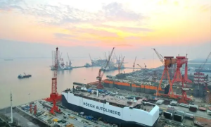 1月14日,招商工业海门基地为挪威滚装船运营商Höegh Autolines(礼诺航运)建造的第四艘9100车双燃料汽车运输船“礼诺阳光”号...