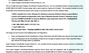 2025 挪威国际海事展(Nor-Shipping)期间,劳氏船级社为上海船舶研究设计院(SDARI)研发的新一代 113,000 吨氨双燃...