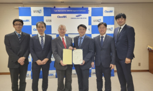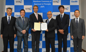 日本船级社(NK)为中国船舶及海洋工程设计研究院(MARIC)自主研发的四款尖端船型颁发了原则性认可(AiP)证书。 该四款船型分别是21万...