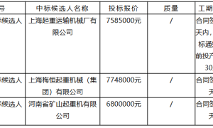 沪东中华造船(集团)有限公司32T门式起重机中标候选人公示 (招标编号:CSSC-02-261020-006/CSCMC-26301-7E)...