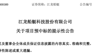 7月29日,江龙船艇科技股份有限公司(以下简称“江龙船艇”)发布《关于项目预中标的提示性公告》。 公告披露,江龙船艇在长岛“蓝色粮仓”海洋经...