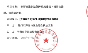 一、合同编号:[350201]XCLH[GK]2025002 二、合同名称:欧厝渔港执法保障设施建设(消防执法船、执法清污船) 三、项目编号...