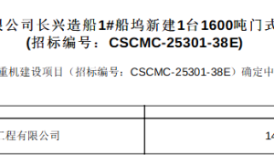 沪东中华造船(集团)有限公司长兴造船1#船坞新建1台1600吨门式起重机建设项目结果公告 (招标编号:CSCMC-25301-38E) 长兴...