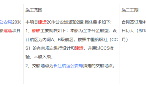 长江航运公安局20米公安巡逻船建造项目建造标段中标公告 一、项目编号:QD20250428-1(招标文件编号:QD20250428-1) 二...