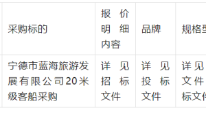 一、项目编号:FJHD宁采[2025]-010号(招标文件编号:FJHD宁采[2025]-010号) 二、项目名称:宁德市蓝海旅游发展有限公...