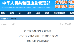 应急管理部组织制定的强制性国家标准《生产安全事故调查技术规范》(GB 6442—2025)和修订的强制性国家标准《生产安全事故分类与编码》(...